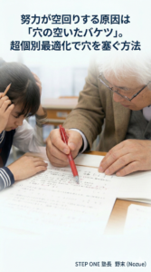 最初の一歩を一緒に考えます!お子さまの現在の学力や状況を丁寧にヒアリングし、基礎から無理のないペースで学べるプランを作成します。「できること」から始めて少しずつステップアップしていきましょう!