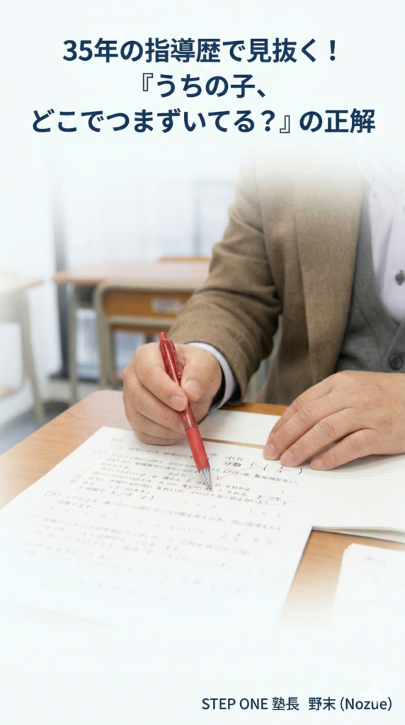 お医者さんがレントゲンを見て病気の原因を特定するように、私はお子さんのテスト用紙や通知表を見て、「どこで学習の歯車が狂ったのか」を特定します。