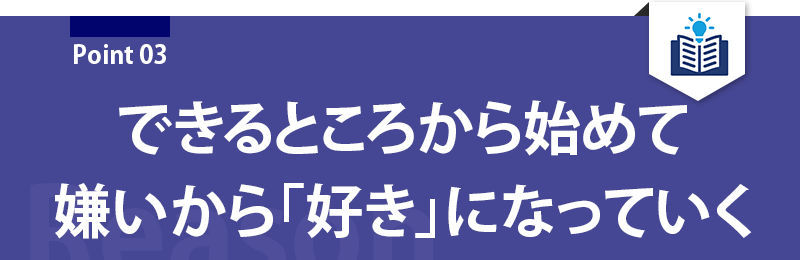 まず、「わかるところから」スタートします。そして新たな苦手なところが分かれば、その範囲を重点的に学習し直すなど柔軟な対応を取り、分からないところを確実にわかるようにしていきます。